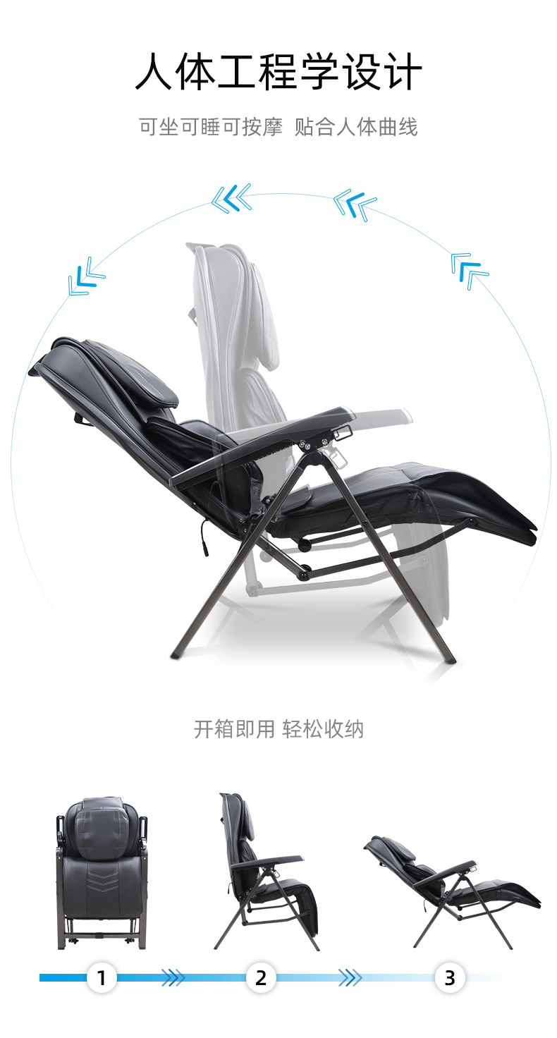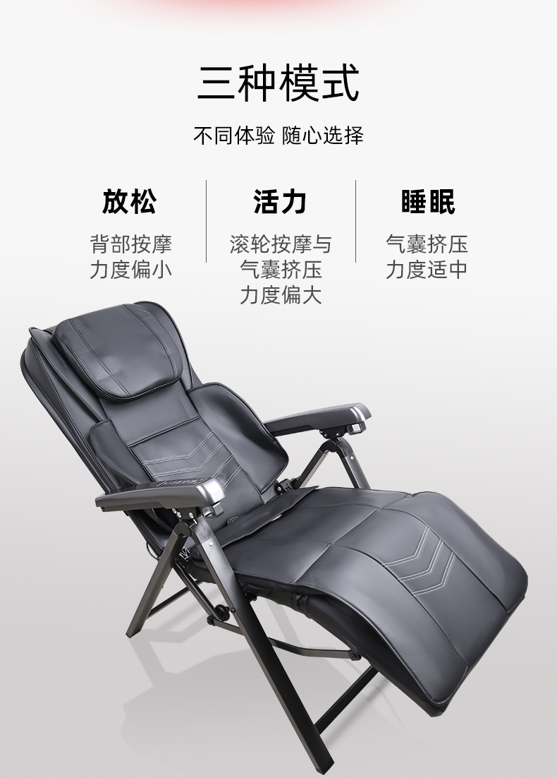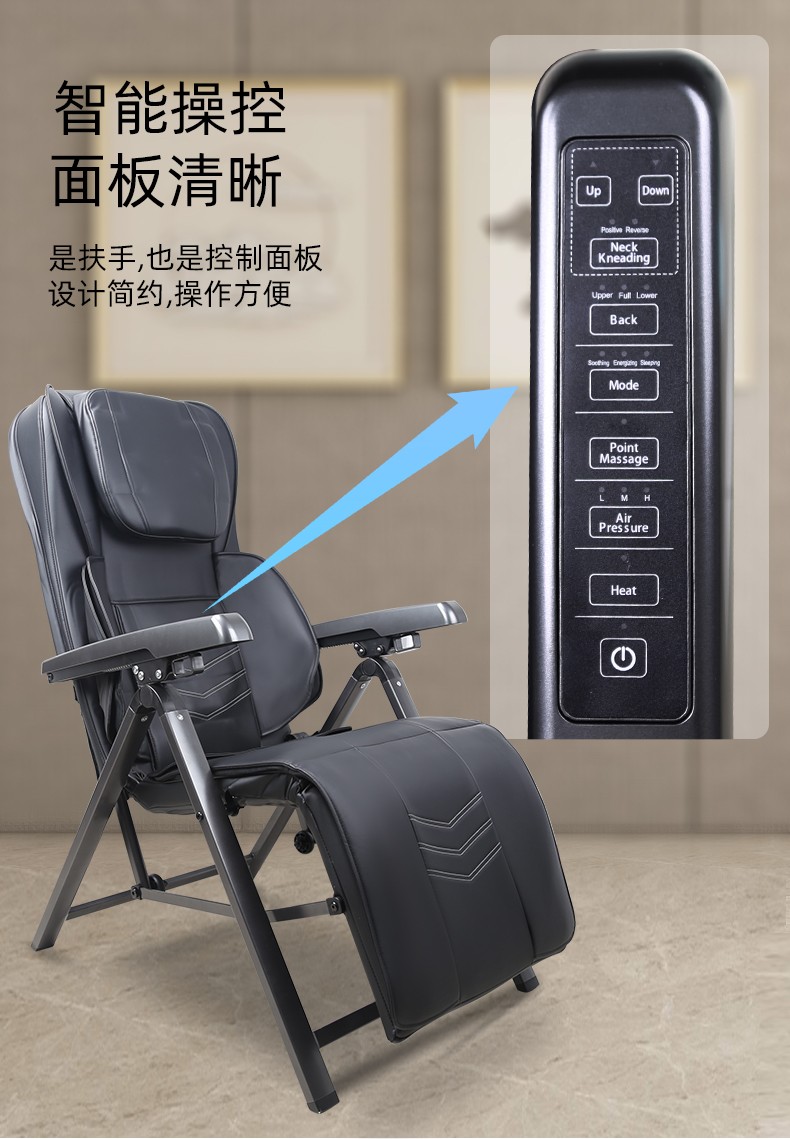 折疊式創(chuàng)意魔術拍打按摩椅1.頸部:創(chuàng)新壓肩按摩,正反轉揉捏,上下可調節(jié)高矮適應不同人。