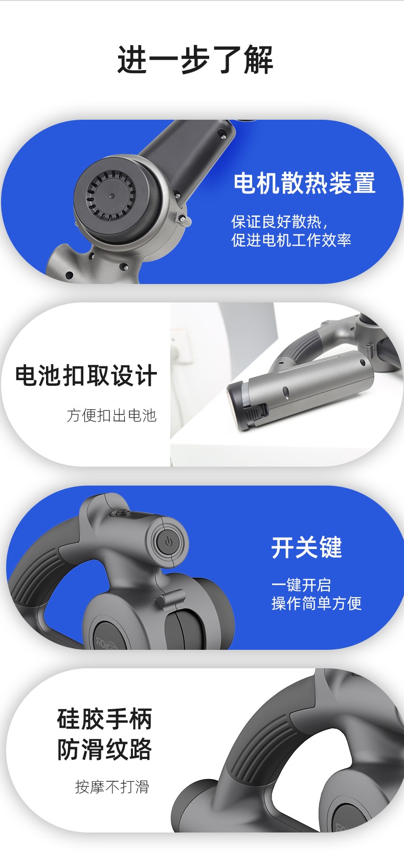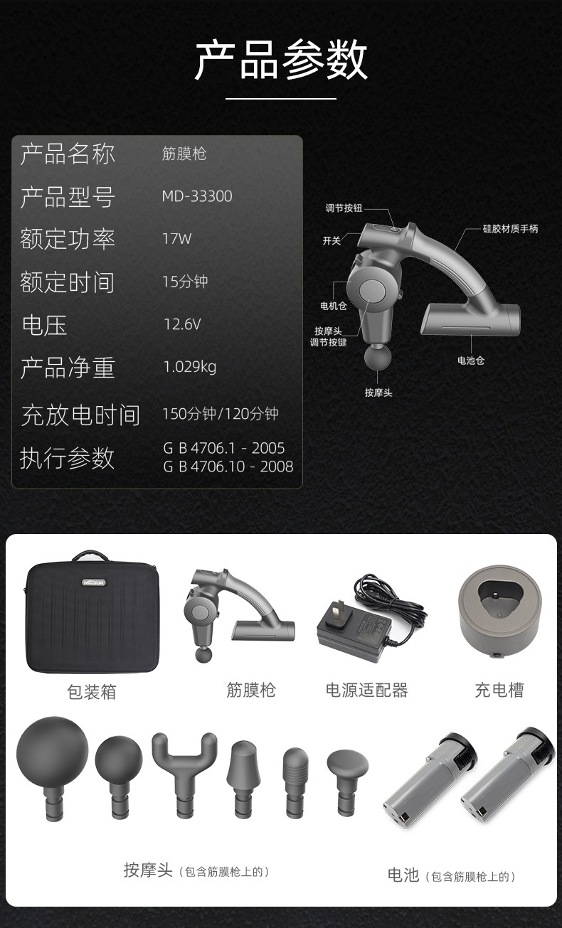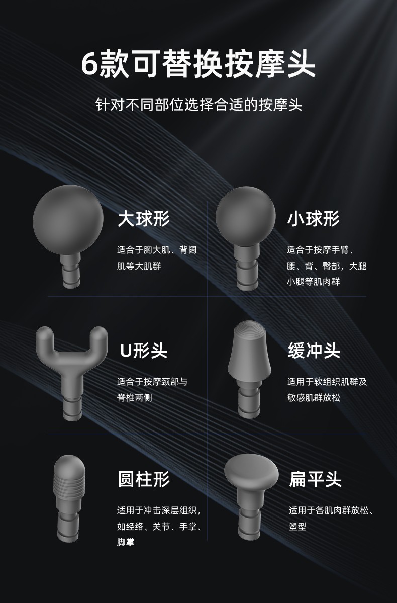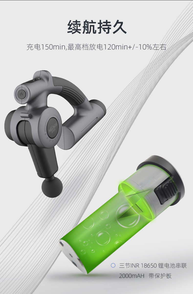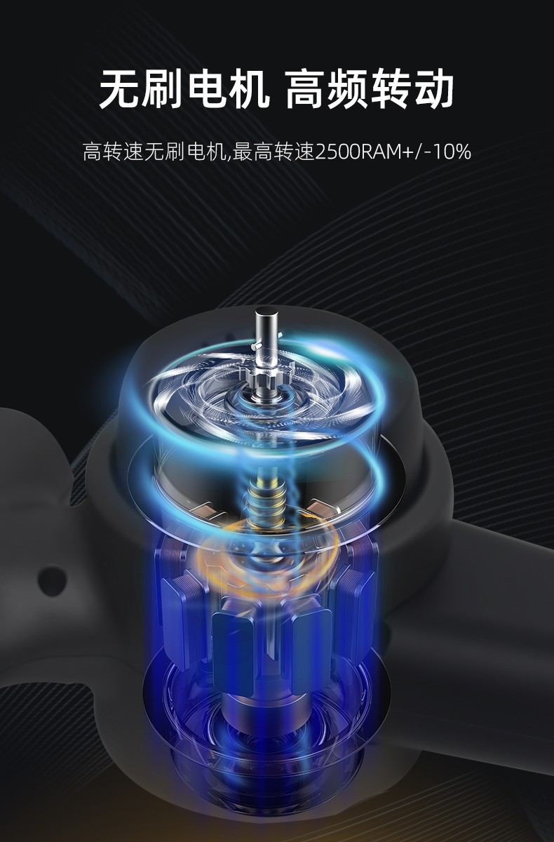 強(qiáng)勁的無刷電機(jī)5個(gè)按摩頭和4個(gè)速度:每分鐘500-2500次