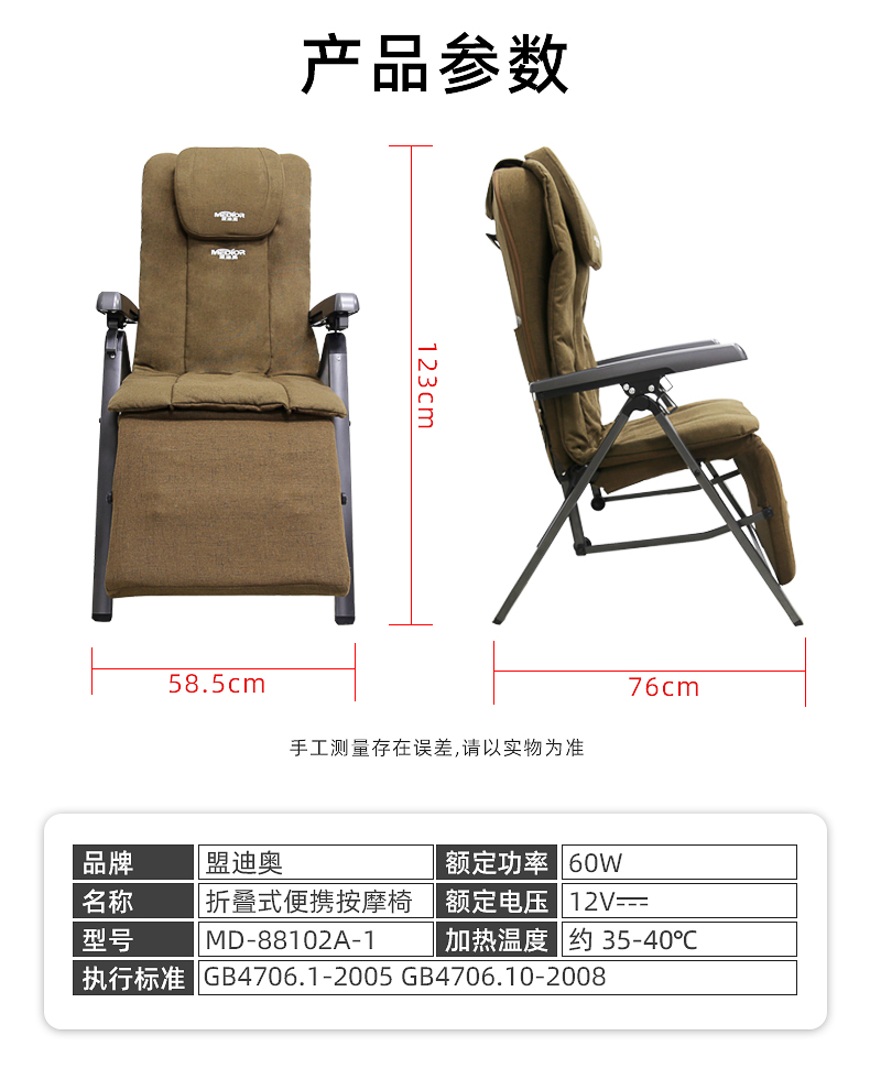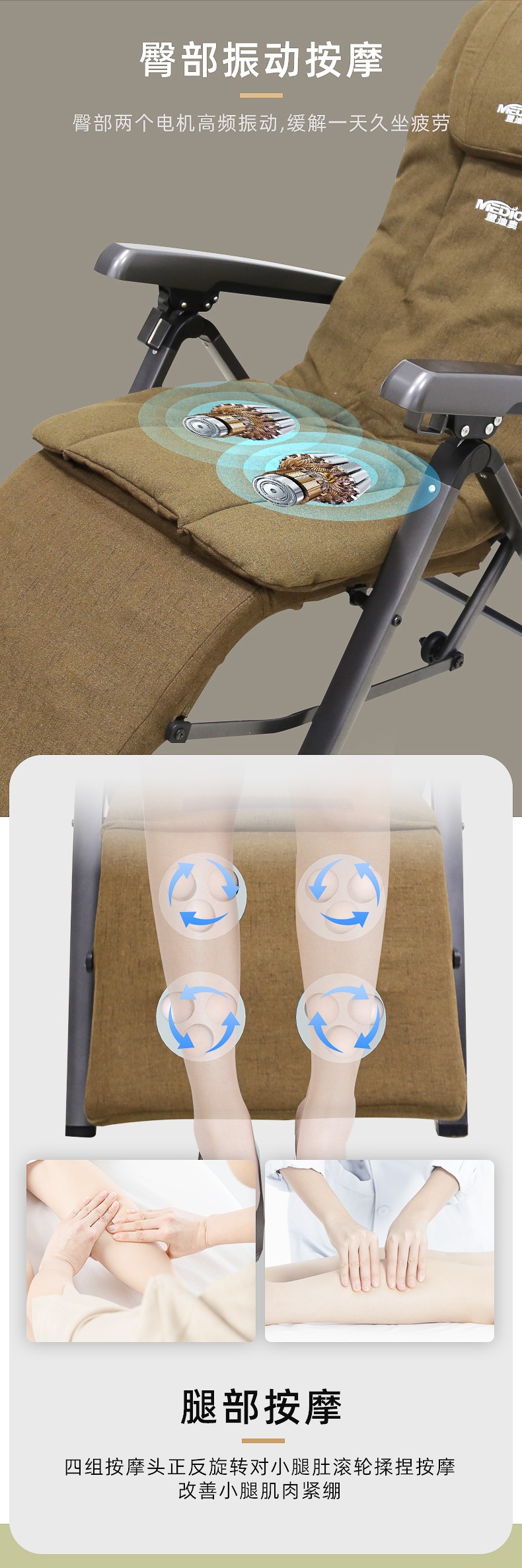 3.氣壓按摩:3檔可調:腰部雙氣袋,大氣泵,腿部雙氣袋按摩,坐墊中間兩側3D按摩